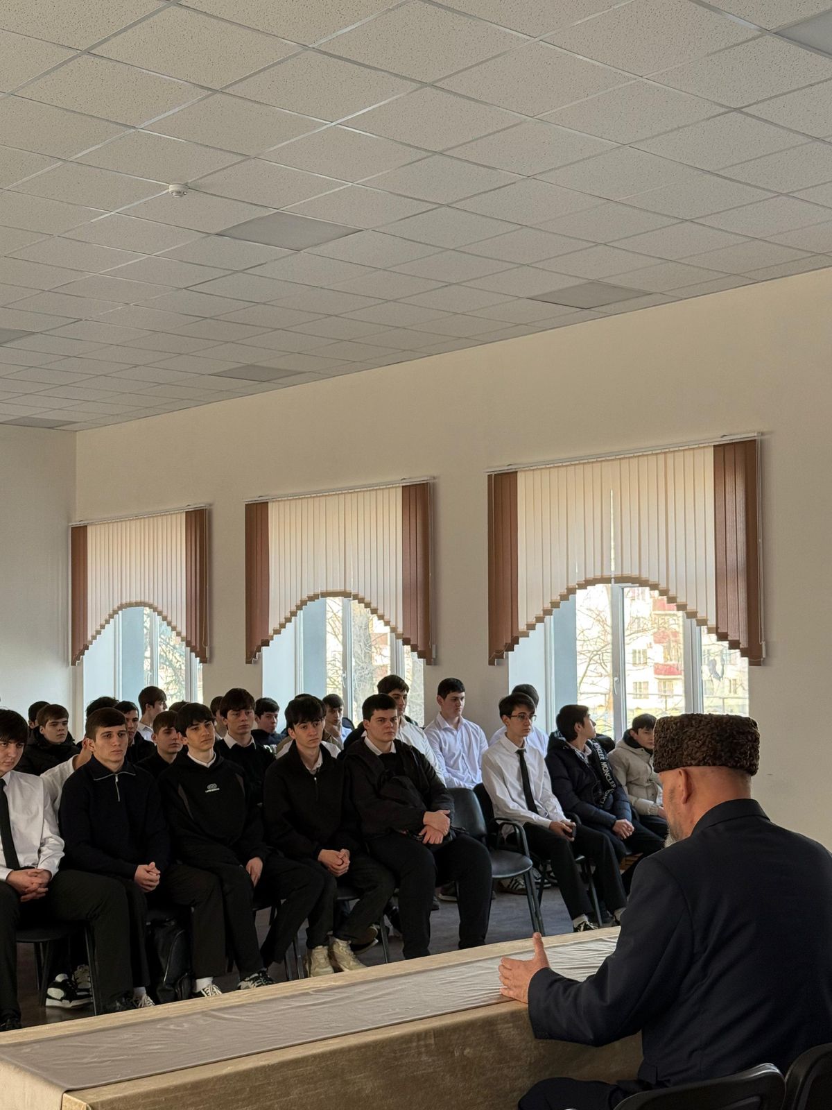 12.02.2025В рамках исполнения приказа Департамента образования Мэрии г. Грозного от 20.01.2025 г. № 8/08-58 «О проведении месячника по профилактике правонарушений и безнадзорного поведения, профилактики наркомании, употребления психоактивных веществ, пропаганде здорового образа жизни» в МБОУ «СОШ №56 им.П.П.Балюка» г.Грозного проведена профилактическая беседа с обучающимися 9-11 классов на тему «Закон и справедливость». Беседу провел председатель комиссии по безопасности и взаимодействии С ОНК Общественной палаты Чеченской республики Мовсар Ибрагимов.