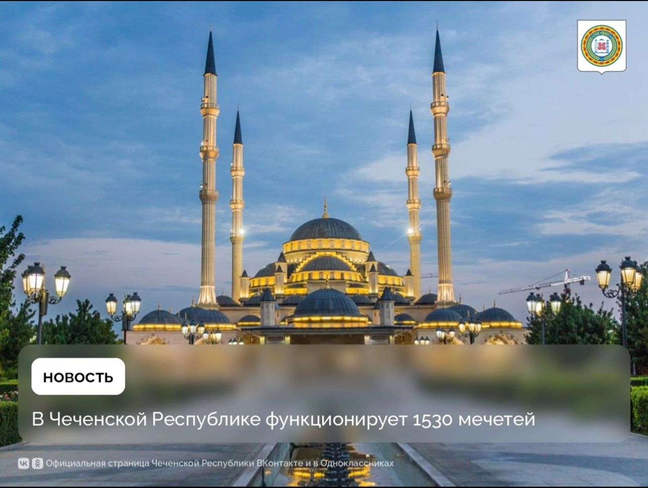 09.09.2025В Чеченской Республике функционирует 1530 мечетей